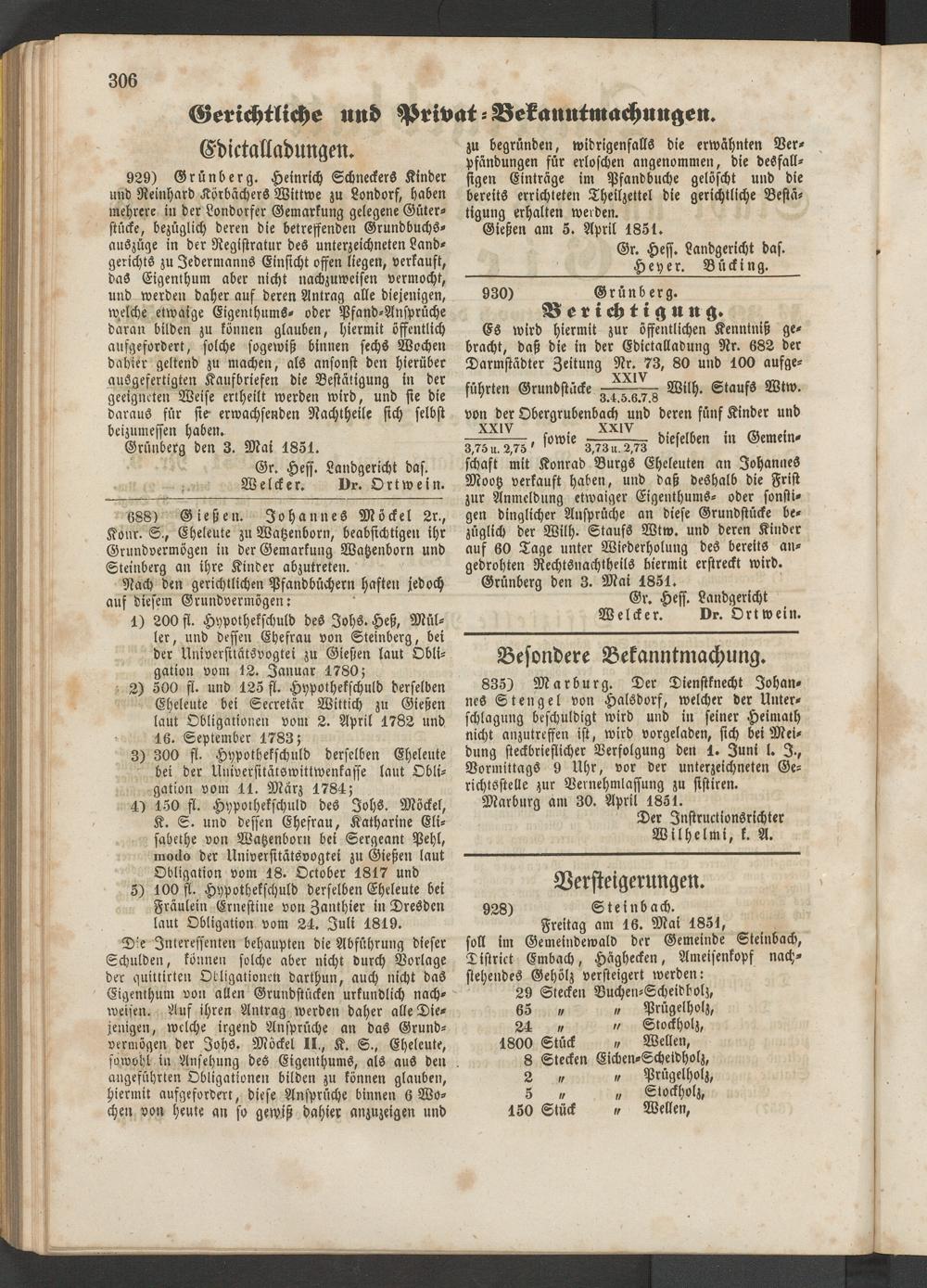 Gr. Hess. Landgericht Welcker. Dr. Ortwein.