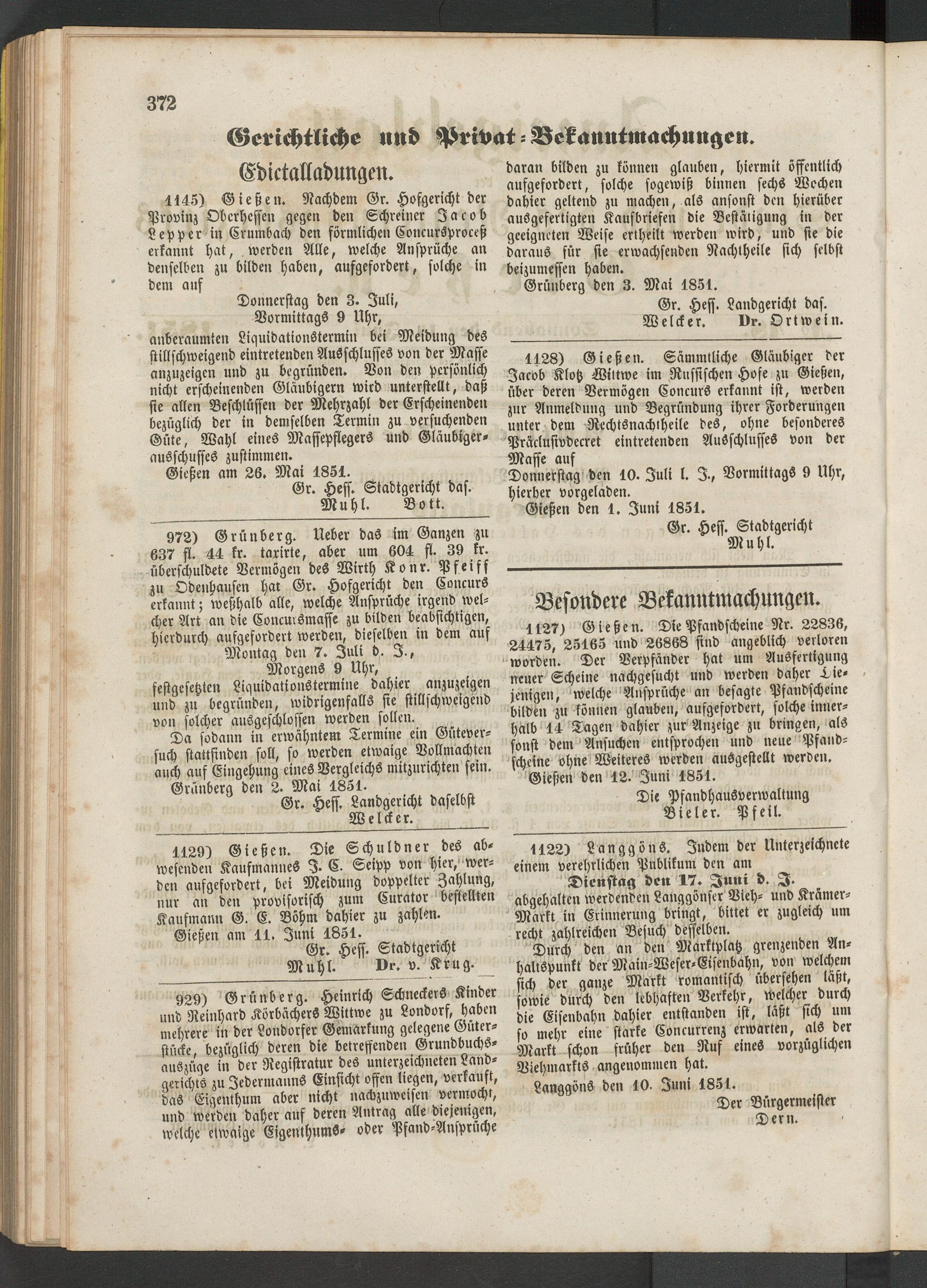 Gr. Hess. Stadtgericht Muhl. _ Dr. v. Krug.