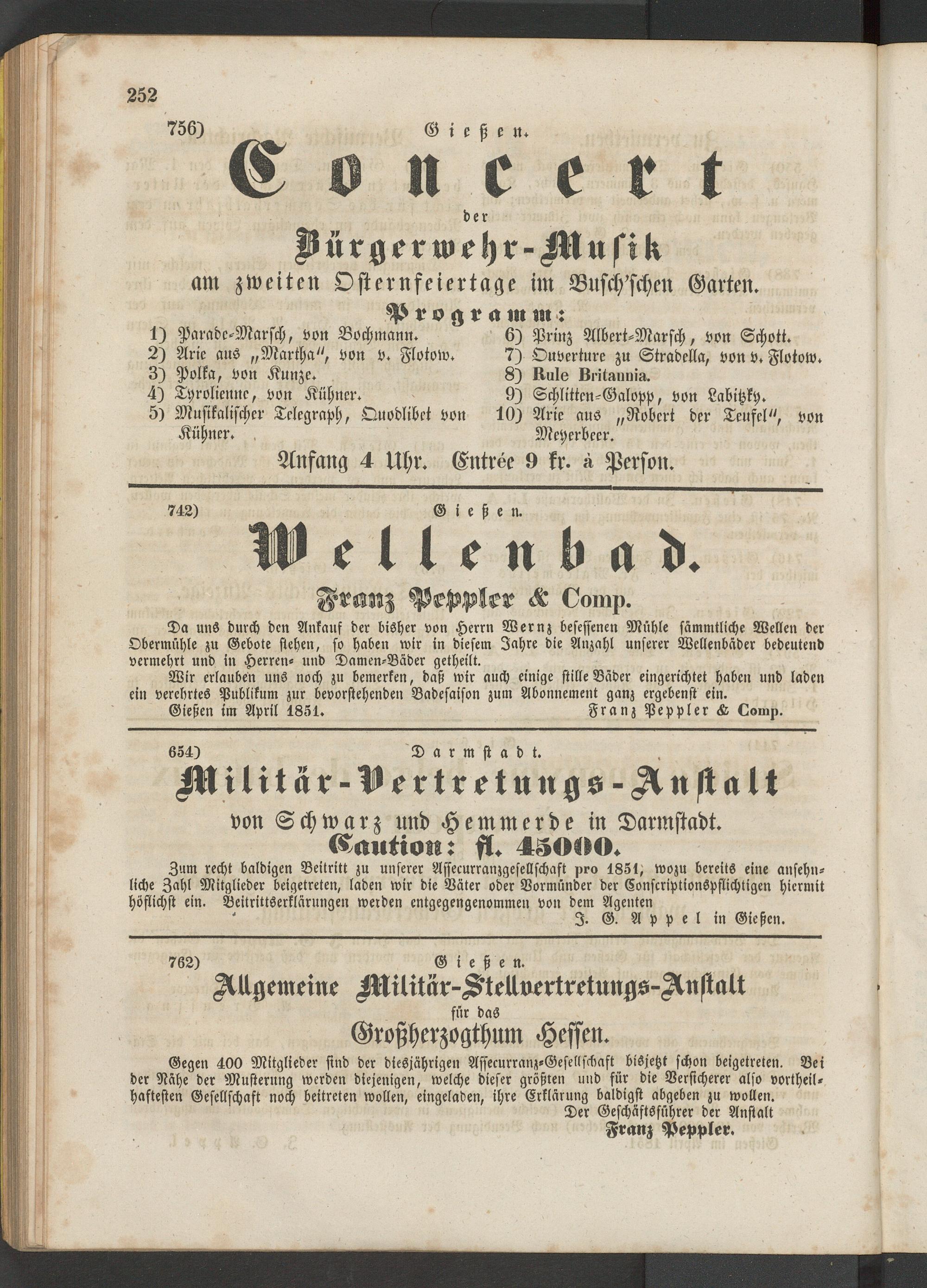 Zum recht baldigen Beitritt zu unserer Assecurranzgesellschaft pro 1851, wozu bereits eine ansehnliche Zahl Mitglieder beigetreten, laden wir die Väter oder Vormünder der Conscriptionspflichtigen hiermit höflichst ein. Beitrittserklärungen werden entgegengenommen von dem Agenten