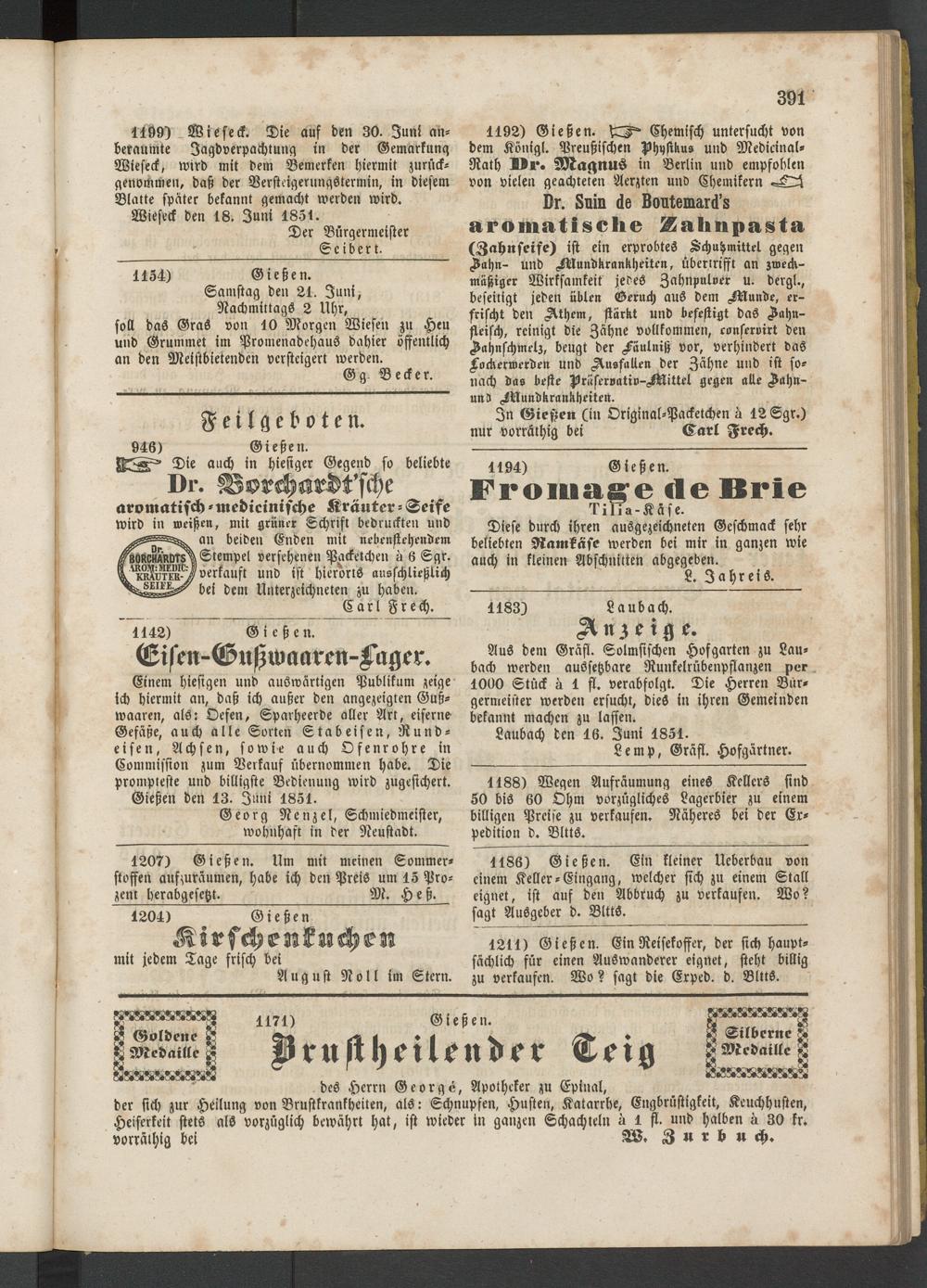 Gießen den 13. Juni 1851.