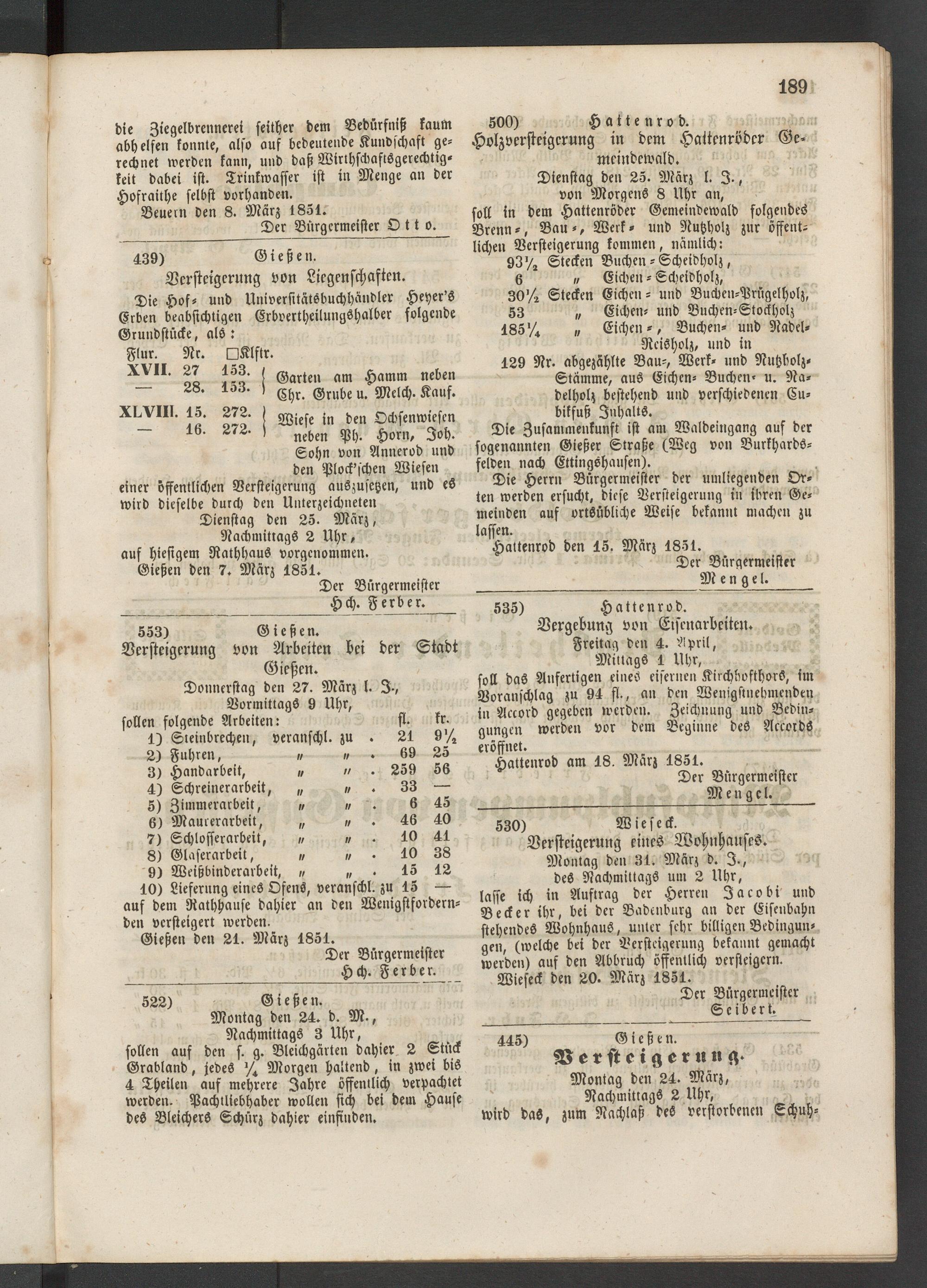 Die Herrn Bürgermeister der umliegenden Orten werden ersucht, diese Versteigerung in ihren Gemeinden auf ortsübliche Weise bekannt machen zu lassen.