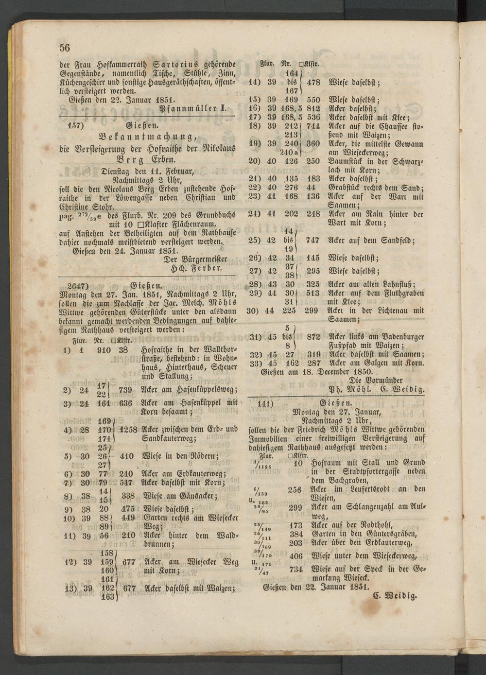 r 677 Acker daselbst mit Waizen; Gießen den 22. Januar 1851.