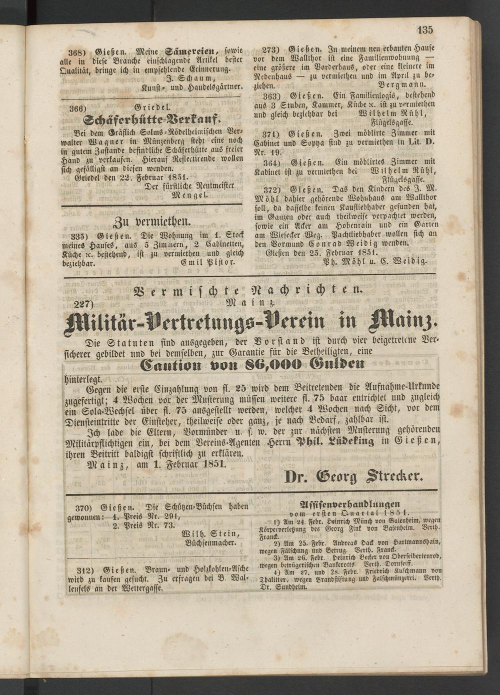ihren Beitritt baldigst schriftlich zu erklären. Mainz, am 1. Februar 1851.