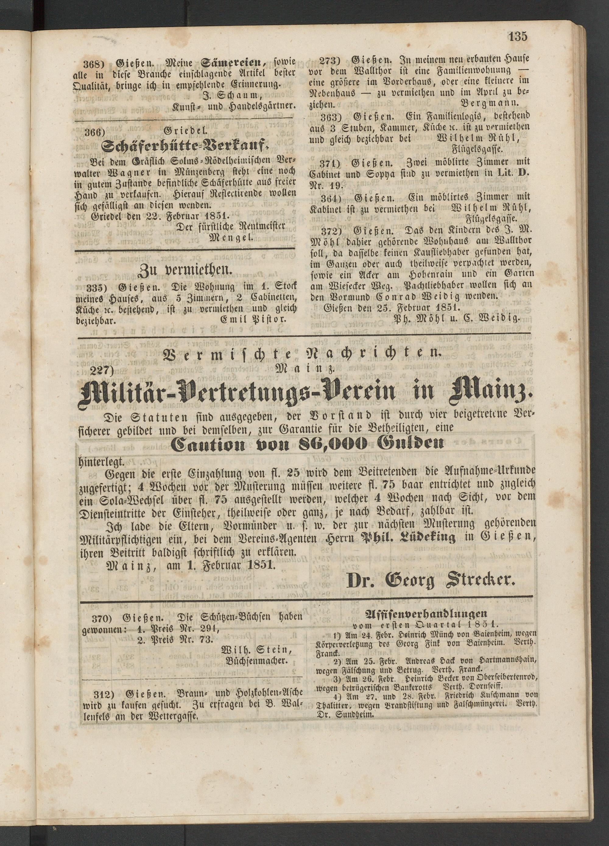 Ich lade die Eltern, Vormünder u. s. w. der zur nächsten Musterung gehörenden Militärpflichtigen ein, bei dem Vereins-Agenten Herrn Phil. Lüdeking in Gießen,