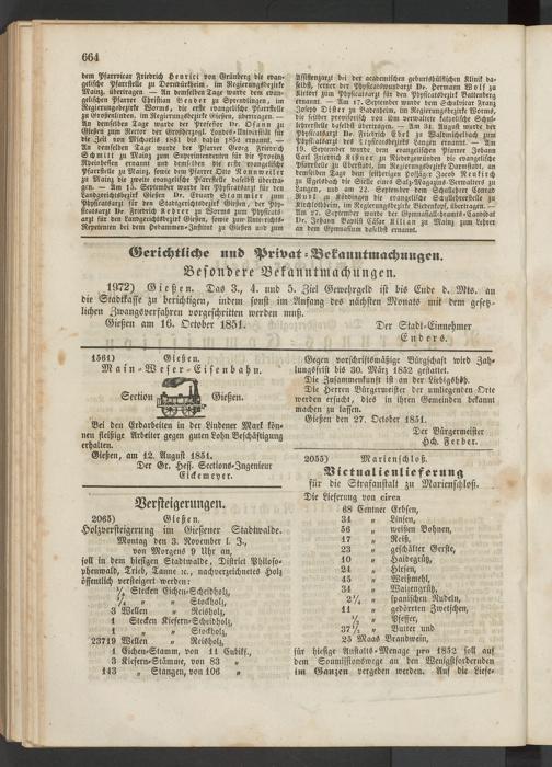 Gießen am 16. Oktober 1851. Der Stadt-Einnehmer