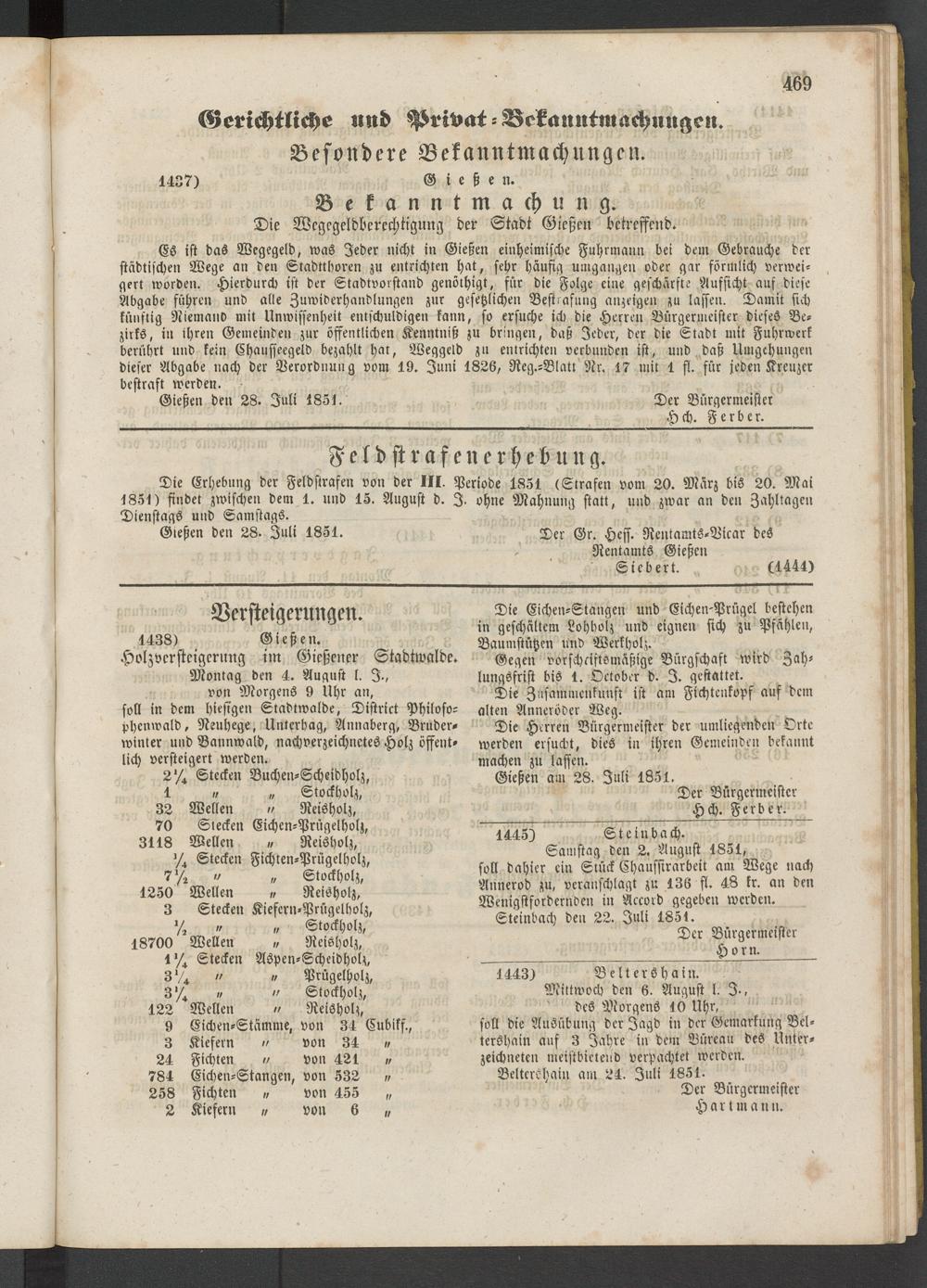 Gießen den 28. Juli 1851. Der Bürgermeister