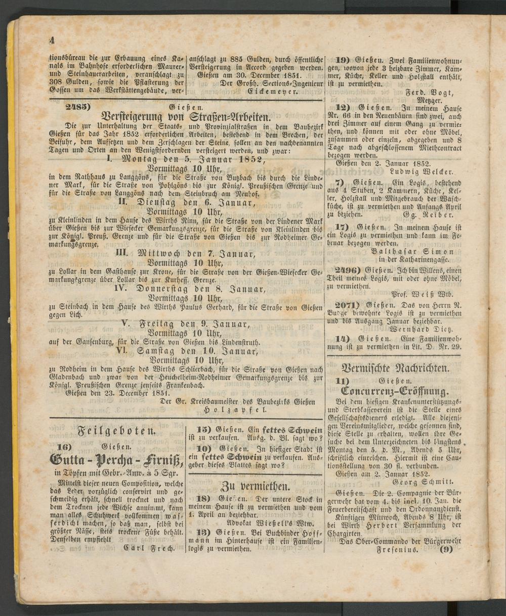 Gießen den 2. Januar 1852.