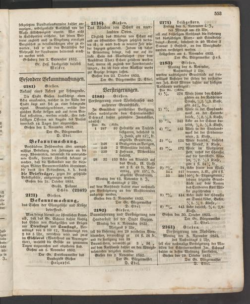 Gießen den 23. October 1852.