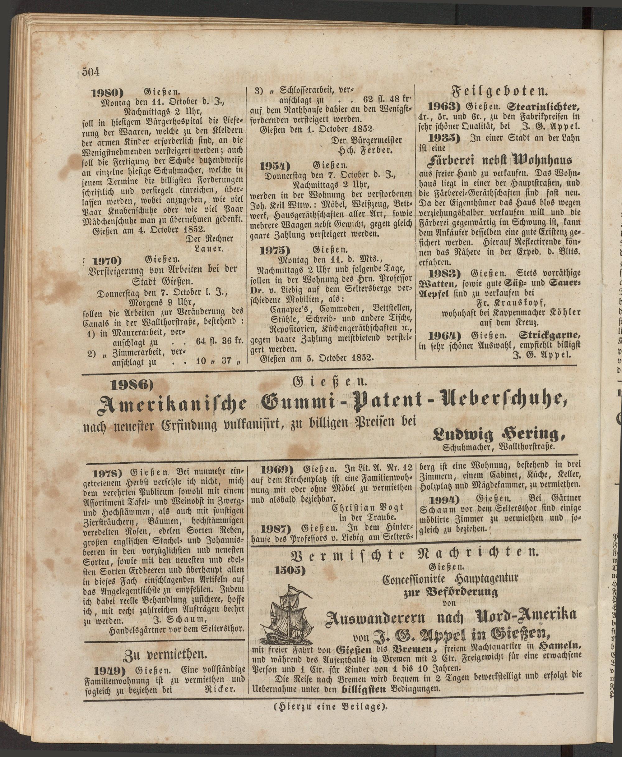 Gießen am 4. October 1852.