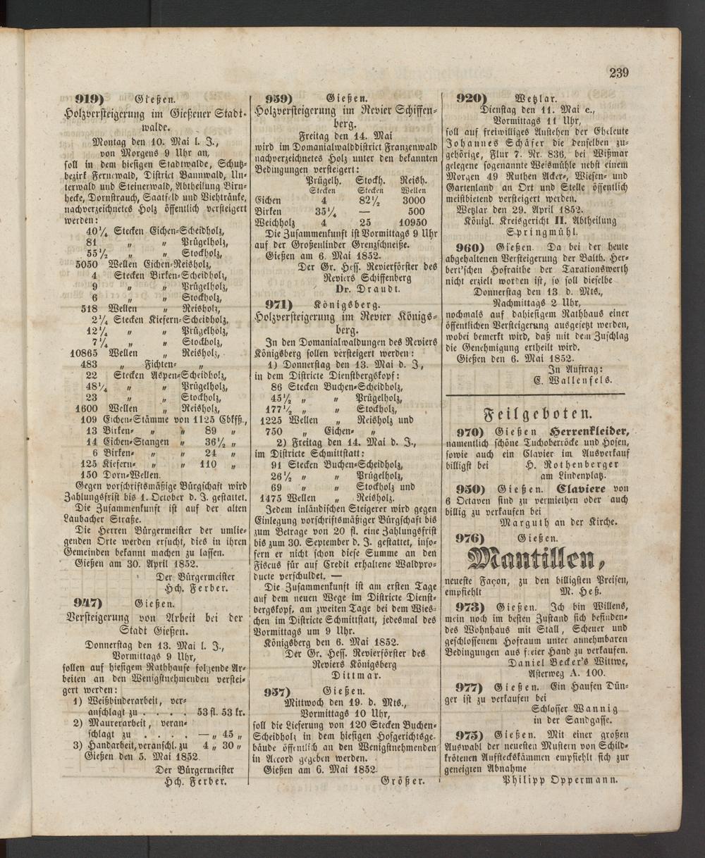 970) Gießen Herrenkleider, namentlich schöne Tuchoberröcke und Hosen, sowie auch ein Clavier im Ausverkauf billigst bei H. Rothenberger am Lindenplatz.