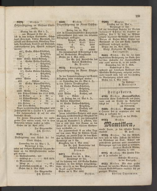 960) Gießen Da bei der heute abgehaltenen Versteigerung der Baltb. Her- berc'schen Hofraithe der Tarationswerth nicht erzielt worsen ist, so soll dieselbe