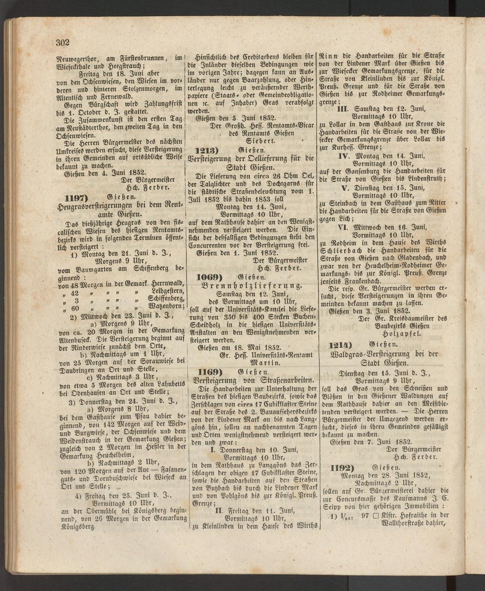Versteigerung der Oellieftrung für die Stadt Gießen.