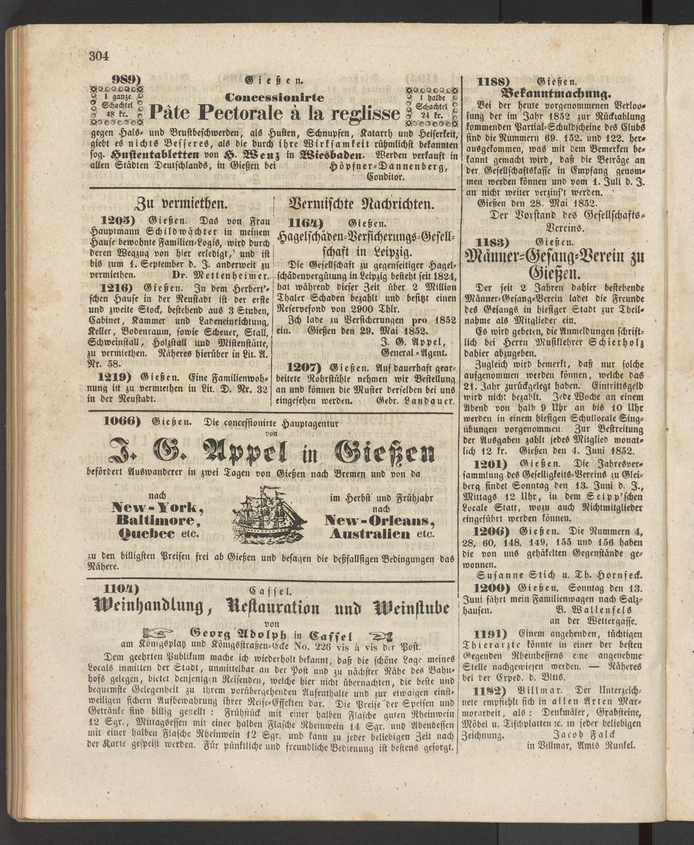 ,3» G» Mppel in Gießen befördert Auswanderer in zwei Tagen von Gießen nach Bremen und von da