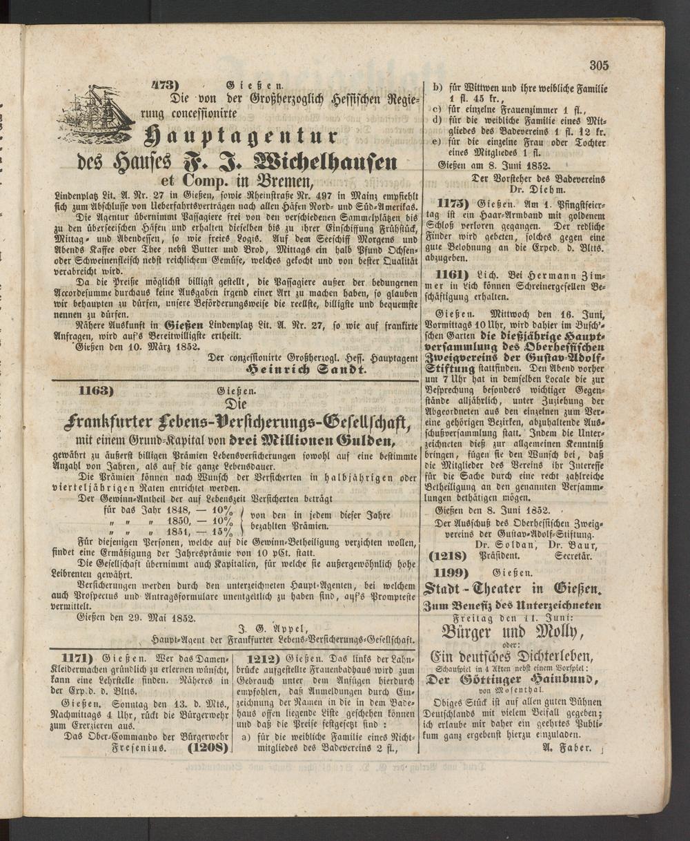 Gießen den 8. Juni 1852. -