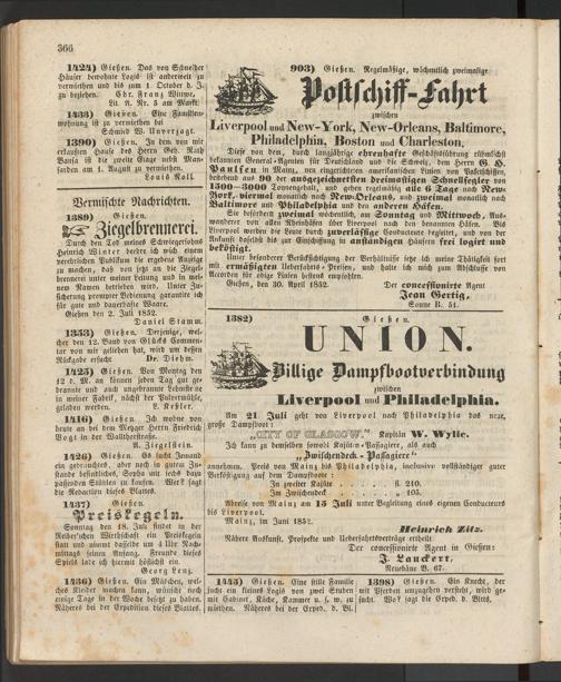 Gießen, den 30. April 1852. Der concessionirte Agent