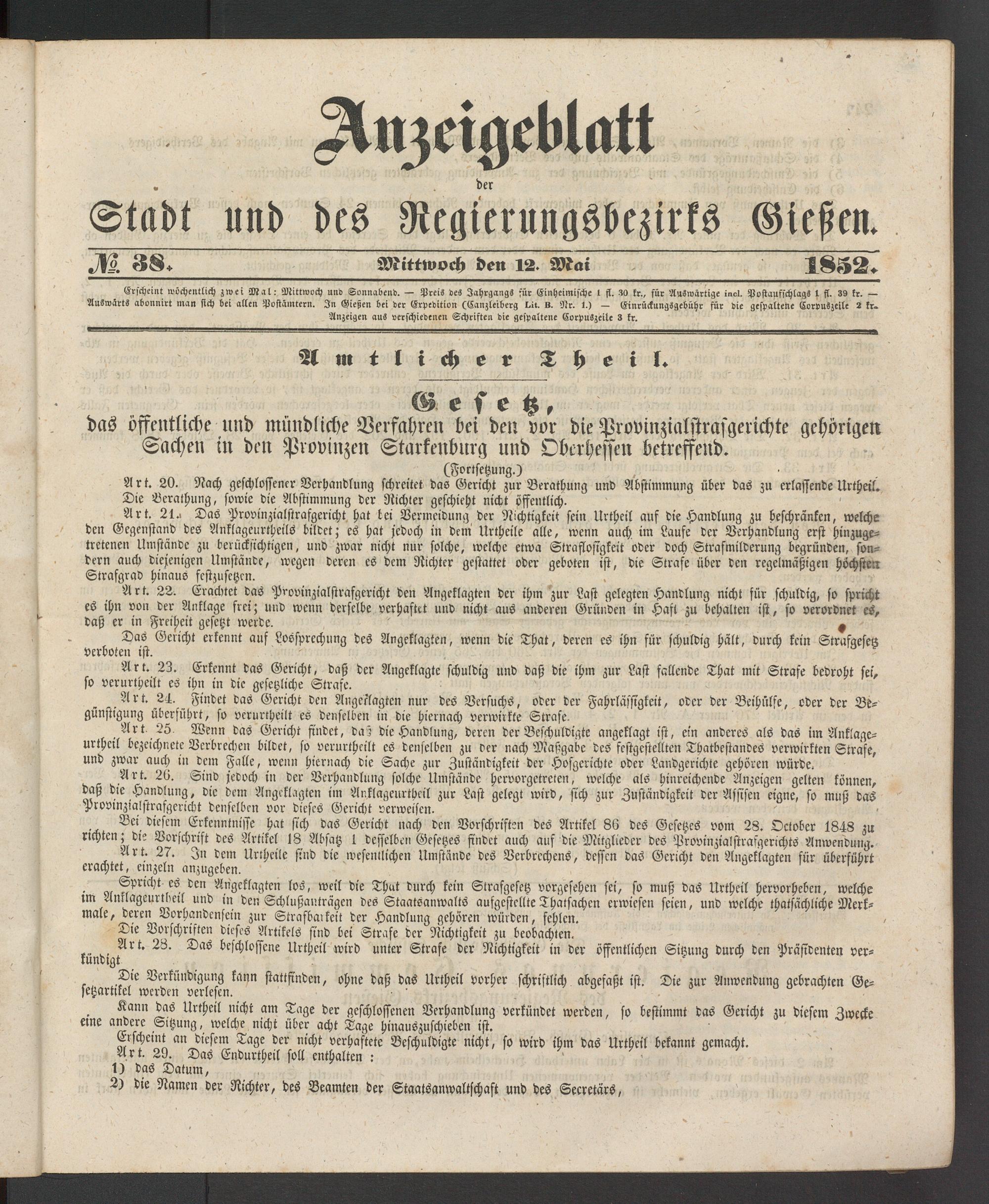 Gesetz, das öffentliche und mündliche Verfahren bei den vor die Provinzialftrasgerichte gehörigen