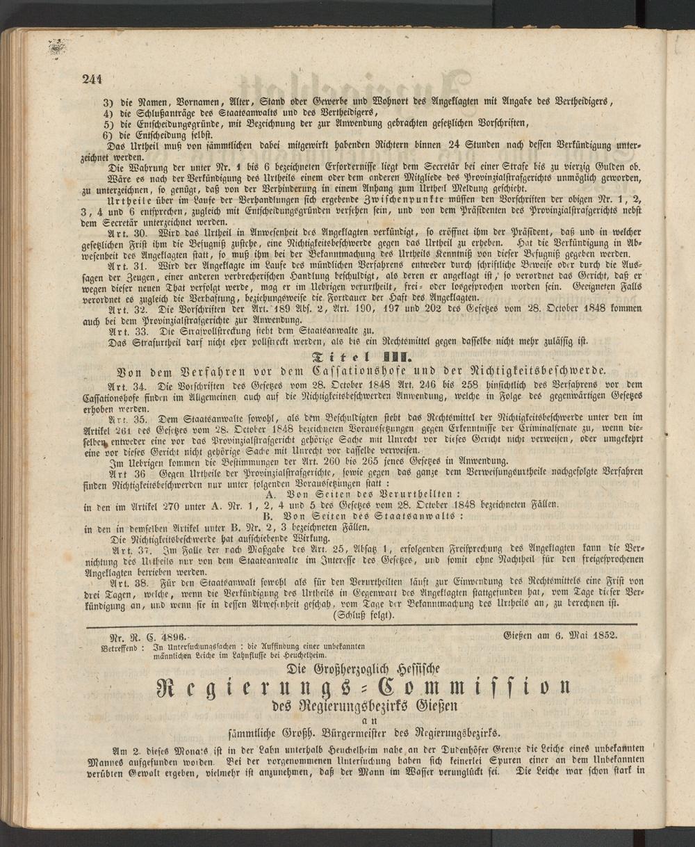 Nr. R. (S. 4896. - Gießen am 6. Mai 1852.