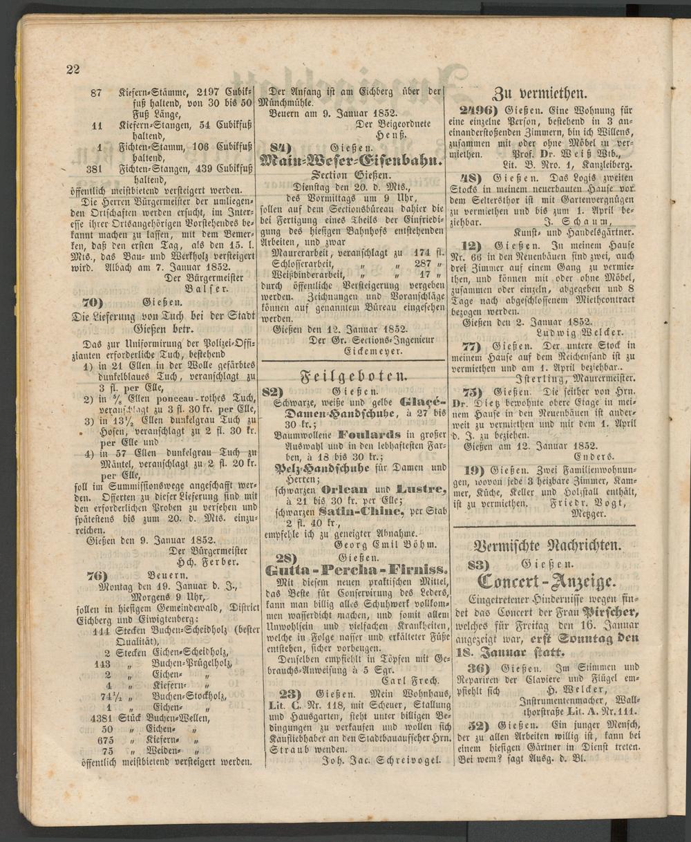 Gießen den 2. Januar 1852.