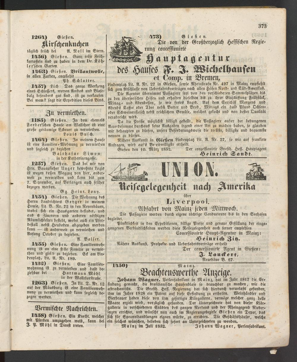Nähere Auskunft, Prospekte und Ueberfahrtsverträge ertheilt Der concessiynirte Agent in Gießen: