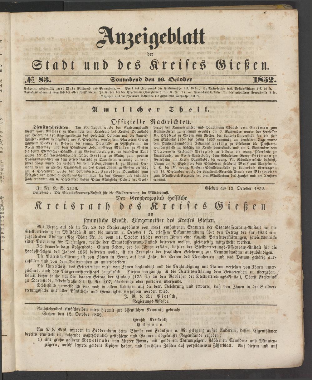 Zu Nr. K. G. 2156. Gießen am 13. October 1852.