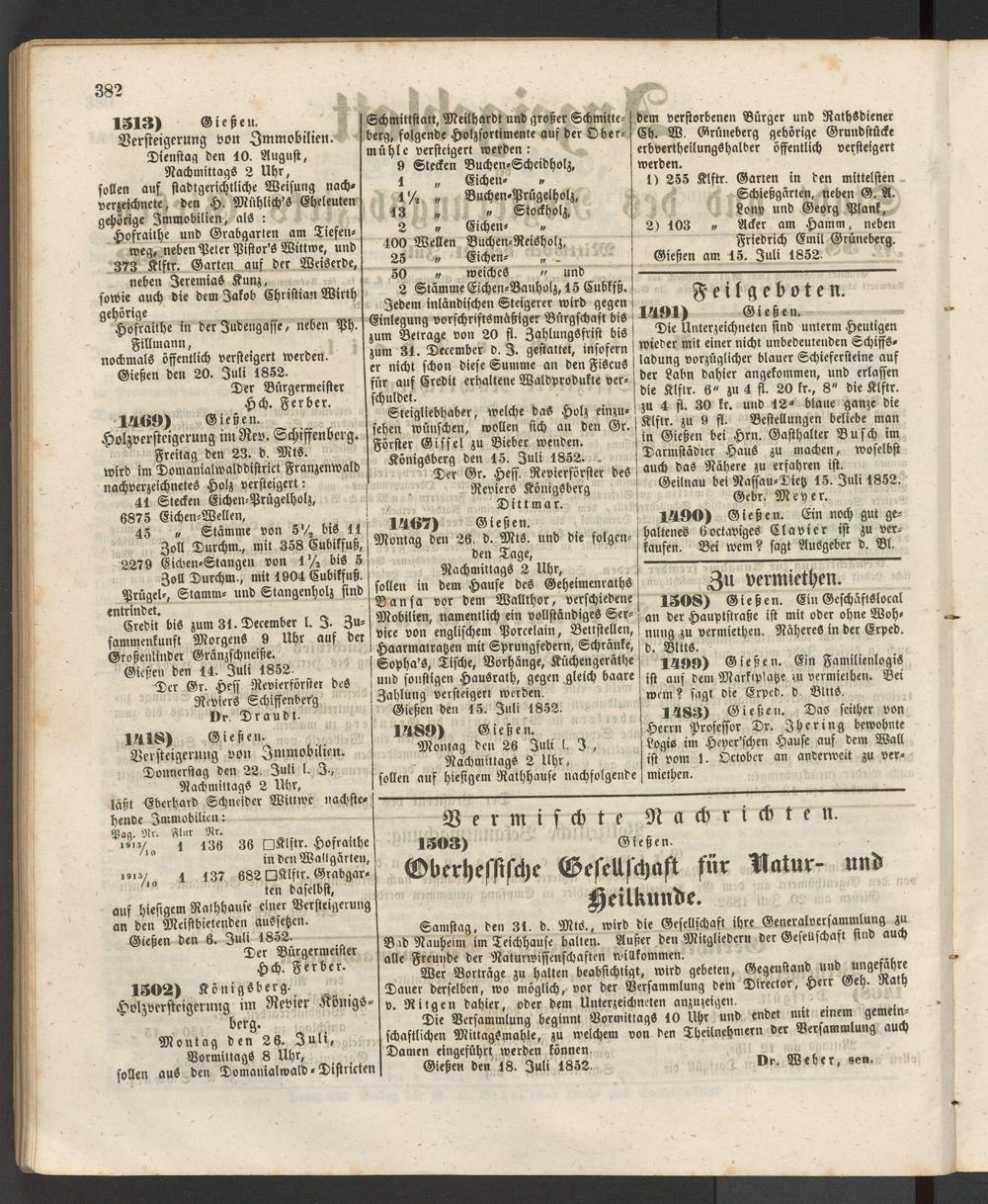 Gießen am 15. Juli 1852.