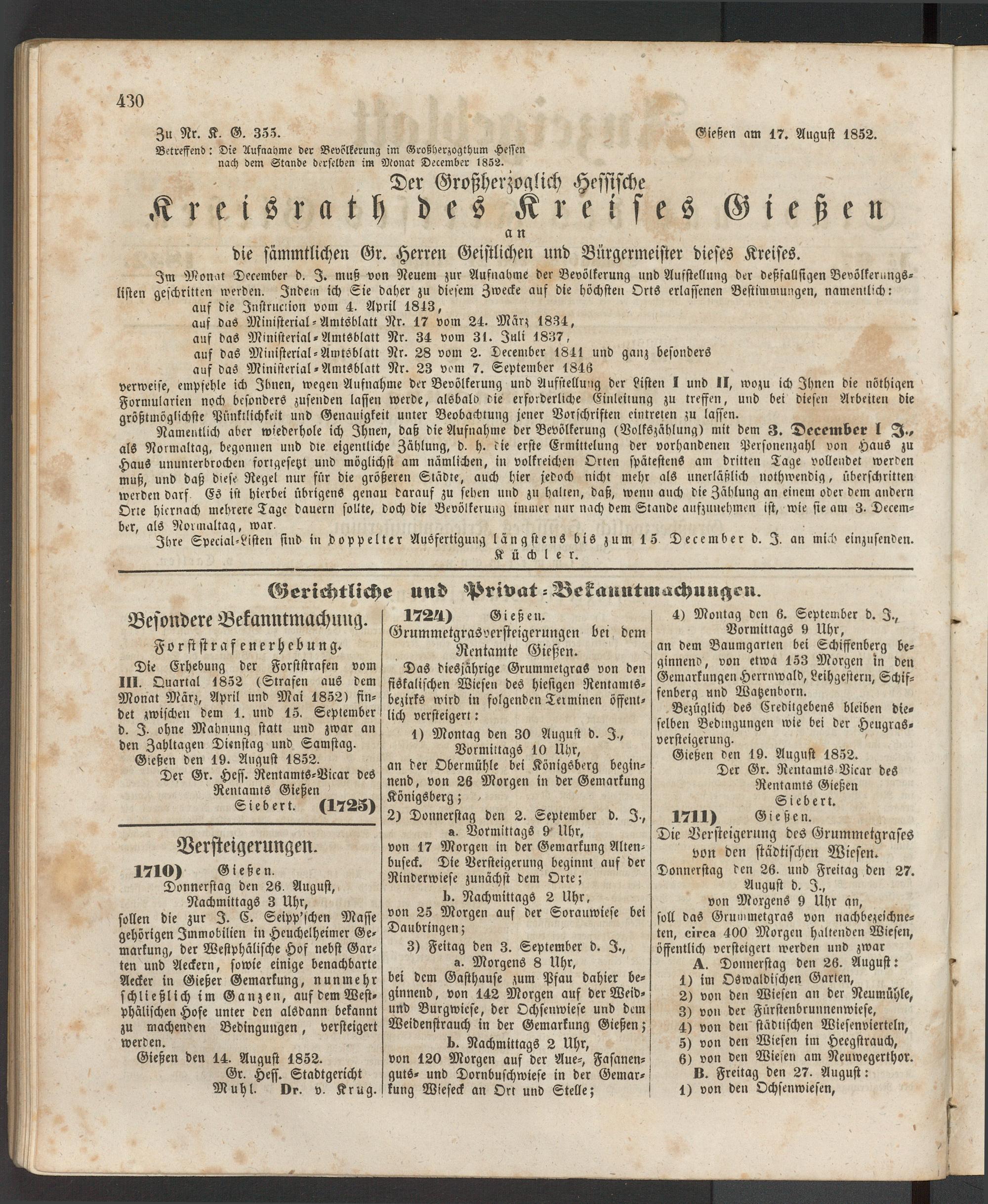 Zu Nr. K. G. 355. Gießen am 17. August 1852.