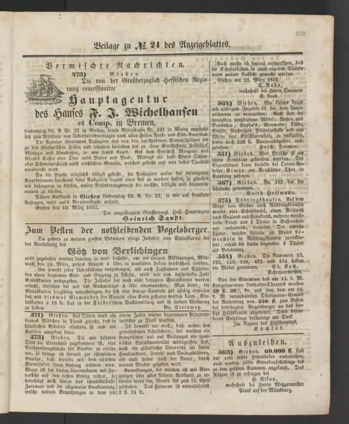 Gießen den 10. März 18-52.