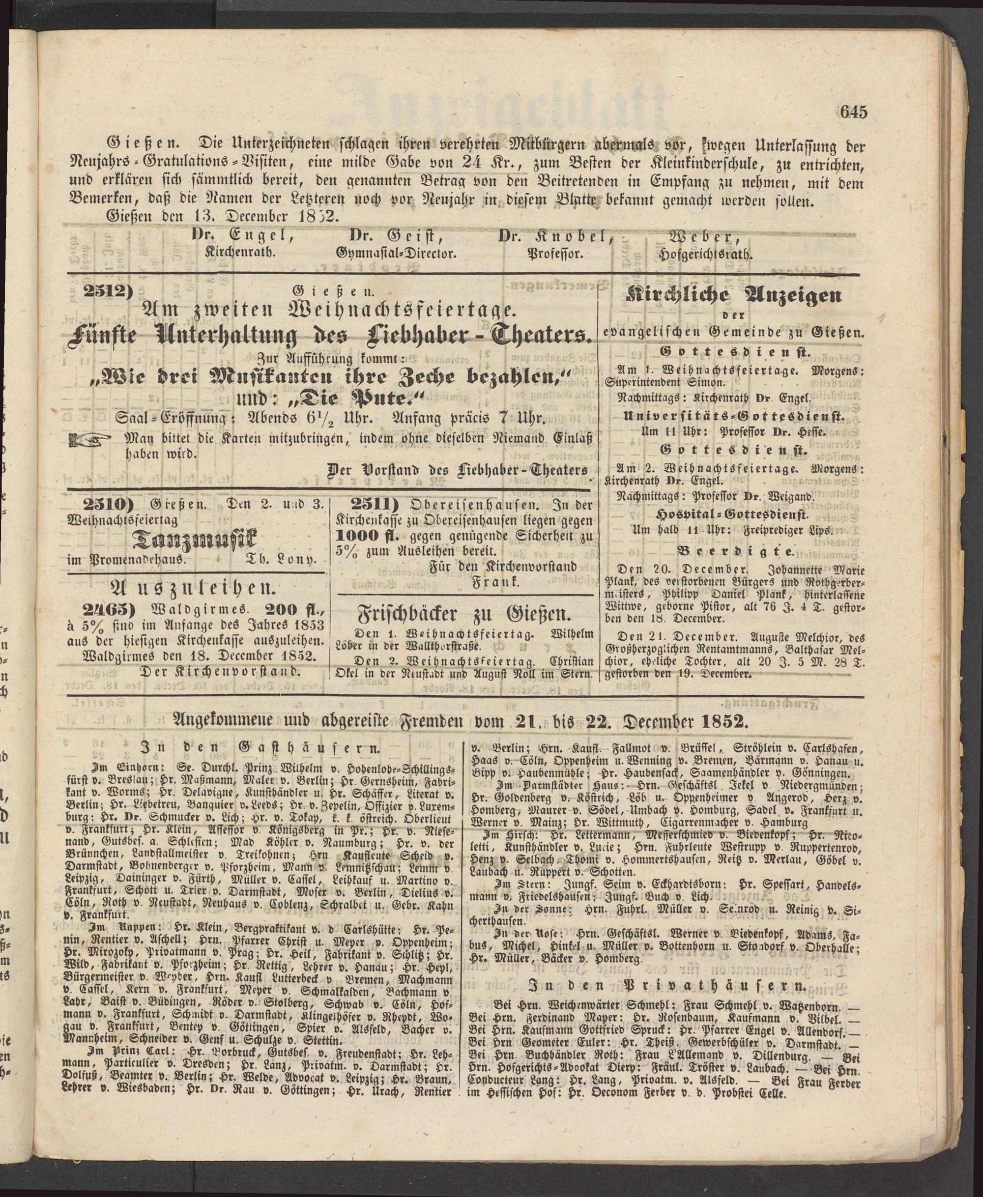 Am 2. Weihnachtsfeiertage. Morgens: Kirchenrath Dr. Engel.