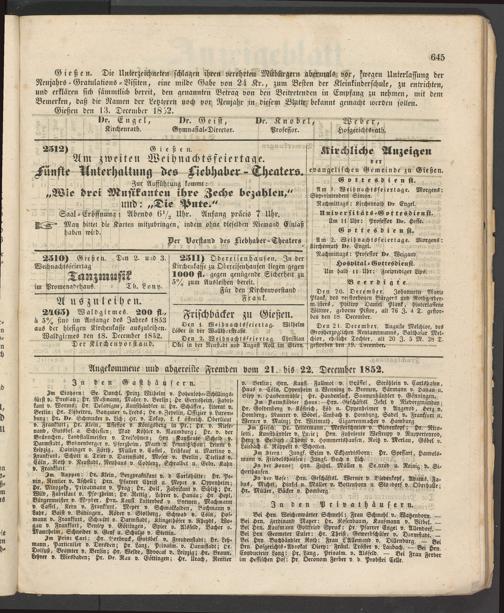 Gießen den 13. December 1852.