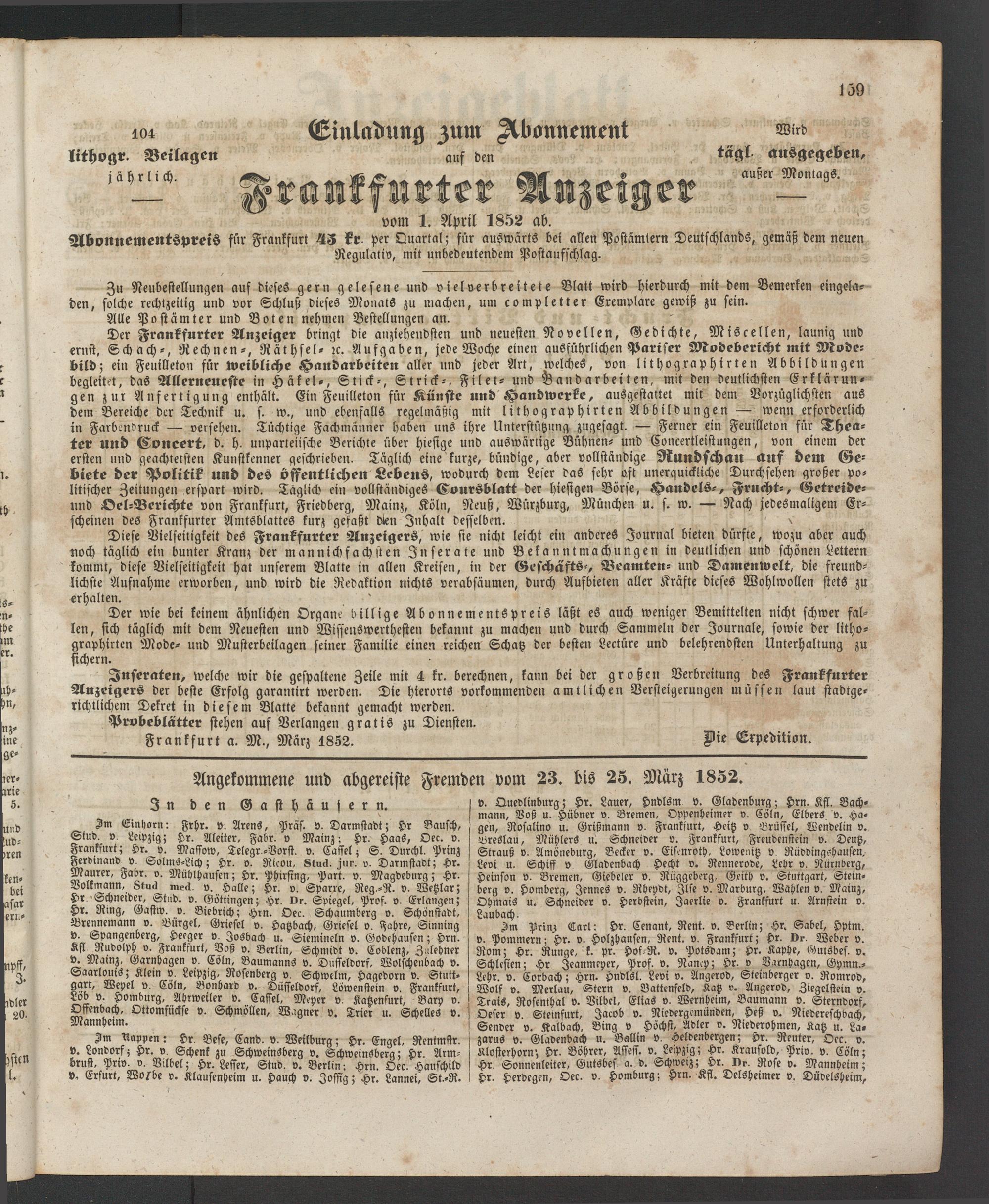 Frankfurt a. M., März 1852. Wie Expedition.