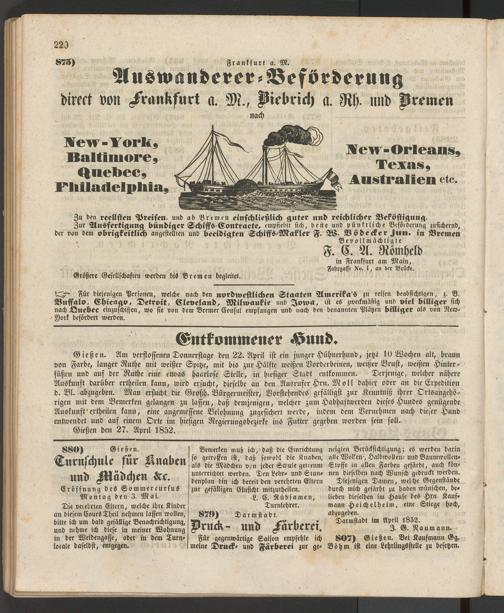 Auswanderer-Beförderung bircct von Frankfurt a. M., Diebrich a. Rh. nnd Prcmen nach