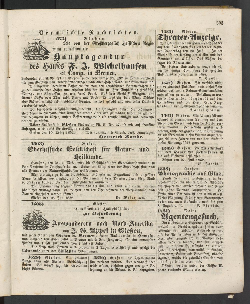 1528) Gießen. Ein gesitteter Junge kann als Scribent Beschäftigung finden. Bei wem? sagt die Erpedition dieses Blattes.