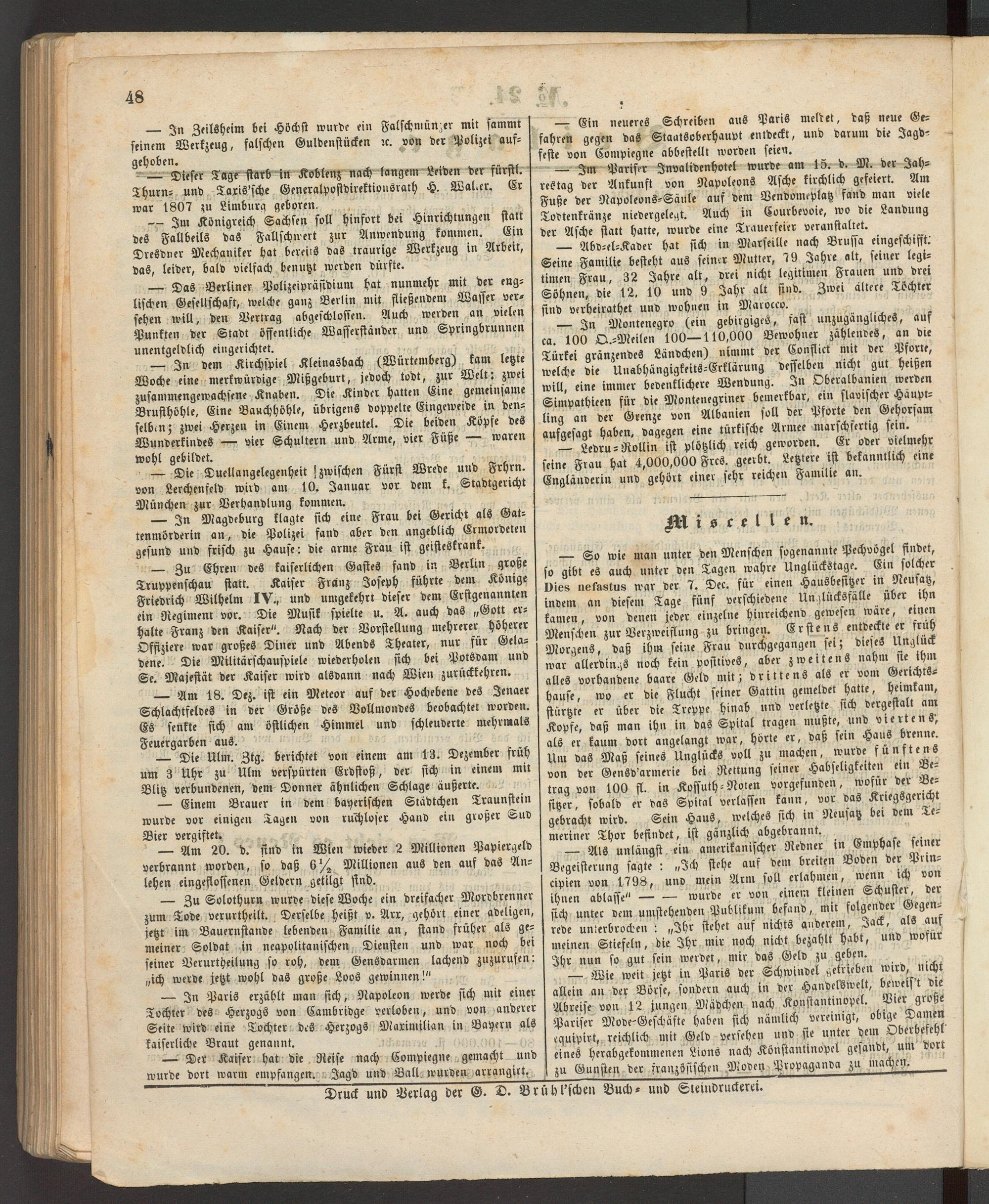 — In Paris erzählt man sich, Napoleon werde sich mit einer Tochter des Herzogs von Cambridge verloben, und von anderer Seite wird eine Tochter des Herzogs Maximilian in Bayern als