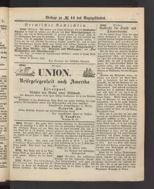 Gießen den 14. Februar 1853.