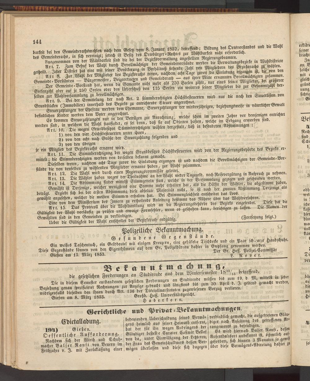 Diese Gegenstände können von den Eigcnthumern auf dem Gi. V J ^er Gr. Hess. Polizei-Commissär
