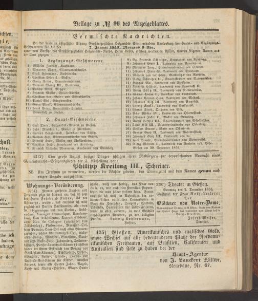 Bei der heute in öffentlicher Sitzung Großherzoglichen Hofgerichts Statt gehabten Ausloosung Per Haupt- und Ergänzungs- Geschworenen für die den 7. Januar 185«, Mvrgenö 9 Ubr,