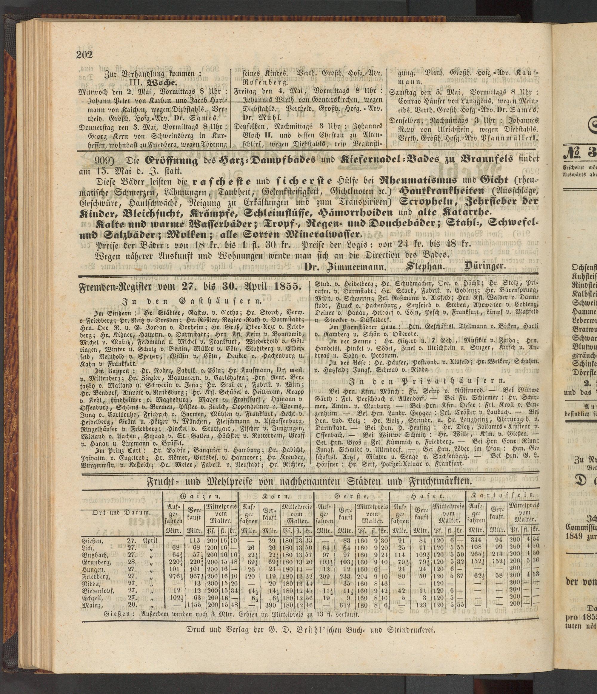 Bei Hrn. Kfm. Münch: Fr. Seipp v. Rülfenrod. — Bei Wittwe Gä'rth : Frl. Pcrschbach v. Allendors. — Bei Fr. Schirmer : Hr. Schirmer, Amtm. v. Marburg. — Bei Hrn. Kfm. Oeser : Frl Kroll v. Bingenheim. — Bei Hrn. Lande. Gcygcr : Frl. Tröster v. Laubach. — Bei Hrn. Lud. Volz : Hr. Volz, Stcindr. u. Hr. Langheinz, Ehirurggeh. v. Darmstadt. — Bei Hrn. H. Hensing : Hr. Dietz, Zollamts-Assistent v. Offenbach. — Bei Wittwe Schmitz : Hr. Wille, Kfm. v. Gießen. — Bei Hrn. Groß : Frl. Kümmich v. Friedberg. — Bei Hrn. C-nr. Rinn: Jungf. Schmidt v. Allendors — Bei Hrn. Löber im Pfau : Hrn. Ge- schaftsl. Artzt, Minter u. Senge v. Sallssenberg. — Bei Hrn. G. L. Hopfner: Hr. Sett, Polizei-Actuar v. Frankfurt.