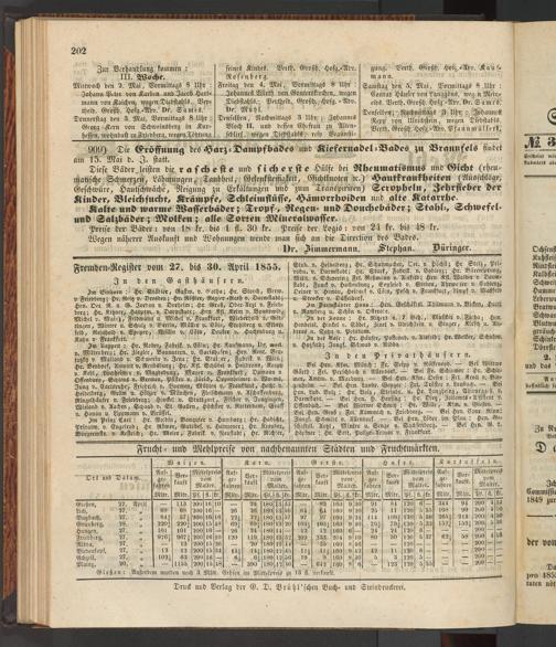 Fremden-Register vom 27. bis 30. April 1855.