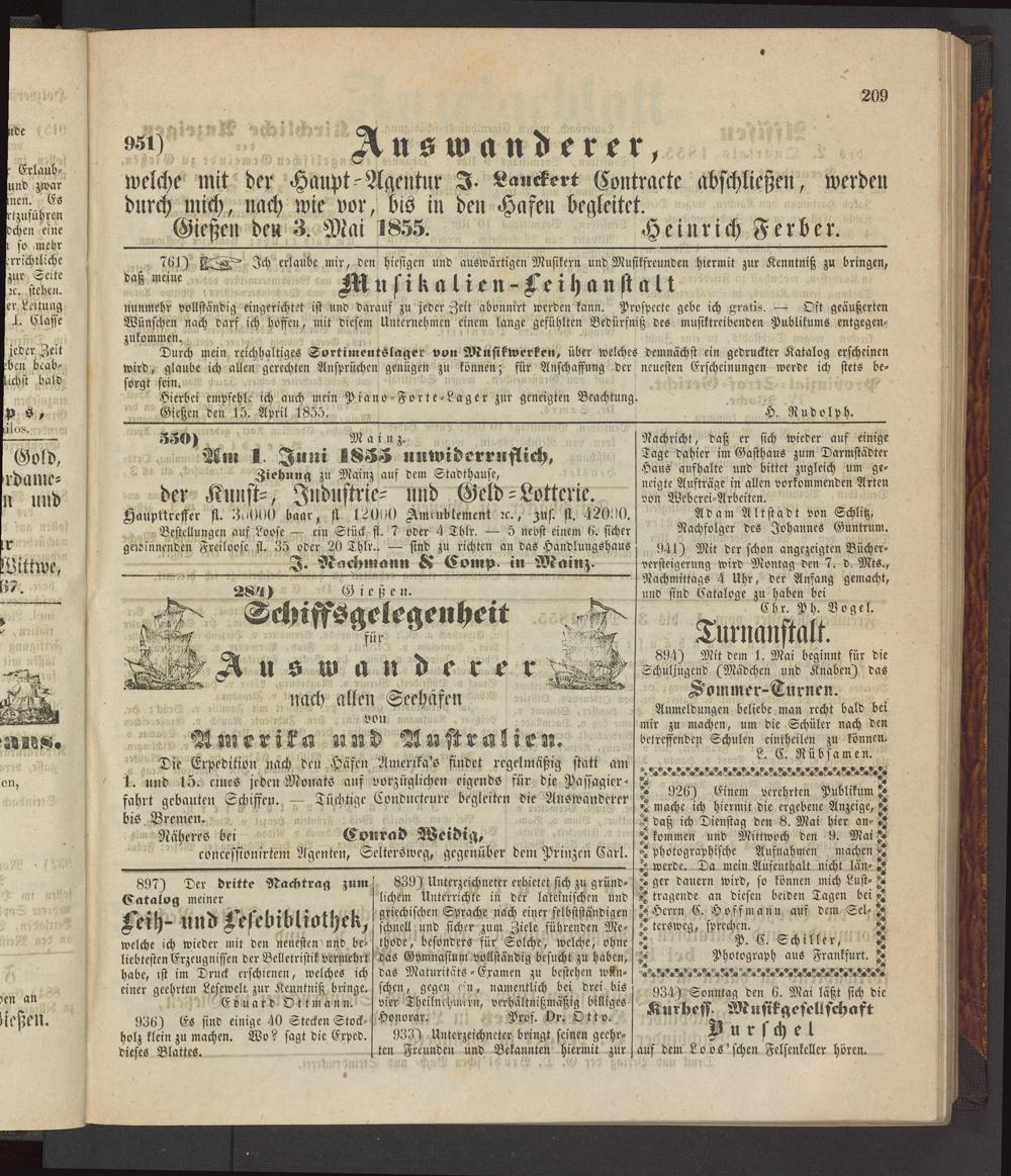 Gießen den 3. Mai 1855. Heinrich Ferber.