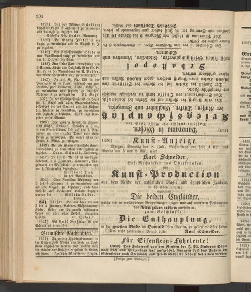 Morgen, Sonntag den 8. Zuli, Nachmittags um halb 4 Uhr, und Abends um 5 rind 8 Uhr, wird