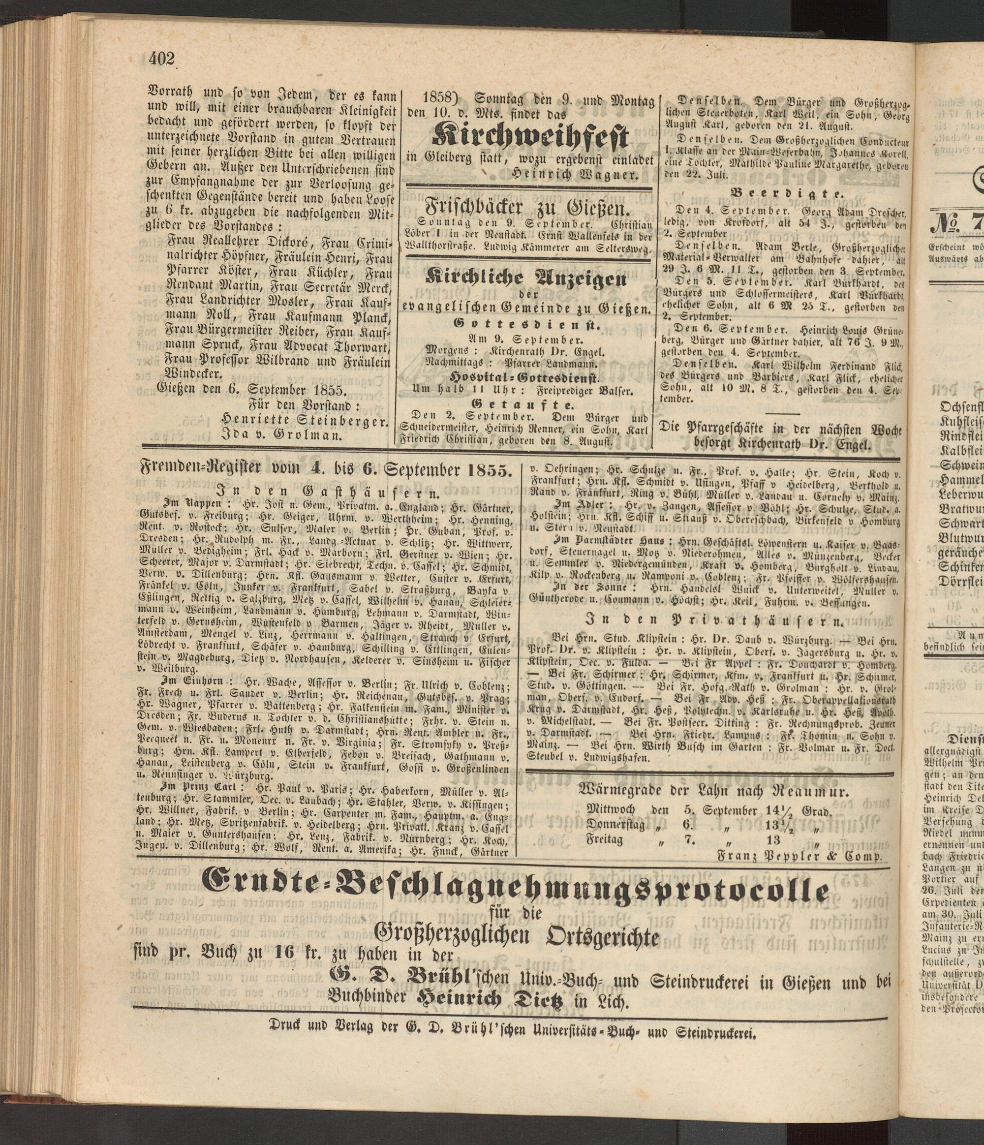 Fremden-Negister vom 4. bis 6. September 1855.