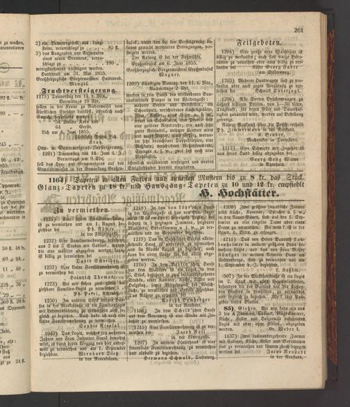 1230) Im unteren Stock meines Hauses in der Marktstraße ist ein Familicnlogis mit Ladeneinrichtung zu vermiethen und sogleich zu beziehen. Auch habe ich noch eine kleine Familicnwohnung zu vermiethen.