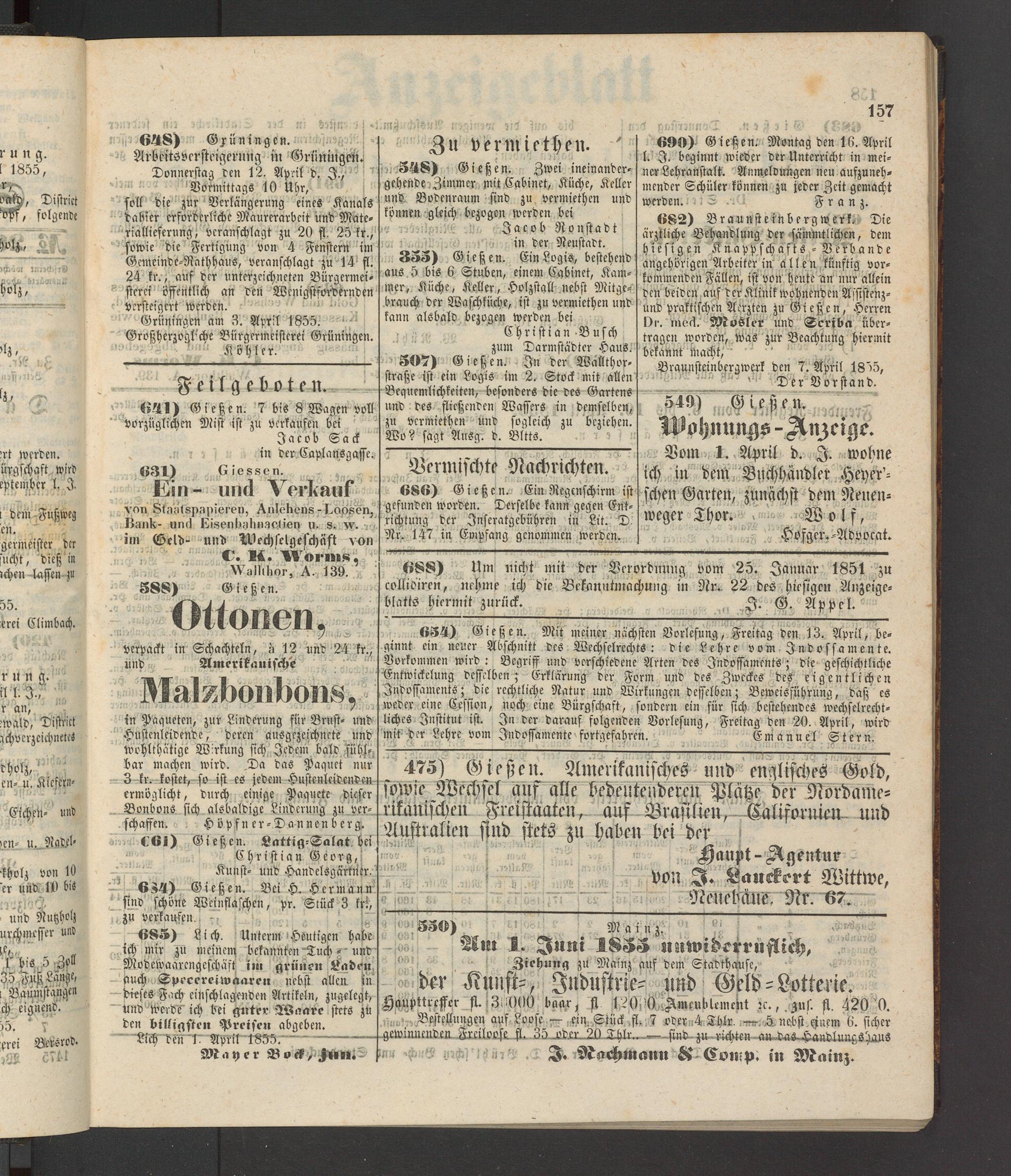 Am 1. Juni 1SS5 uNwiderruffich, Ziehung zu Mainz auf dem Stadthause,