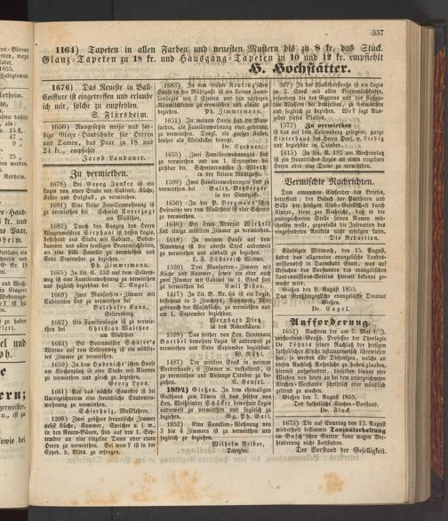 ist das auf dem Seltersberg gelegene, ganze Hinterhaus des Herrn Prof. v. Liebig und beziehbar im Oktober.