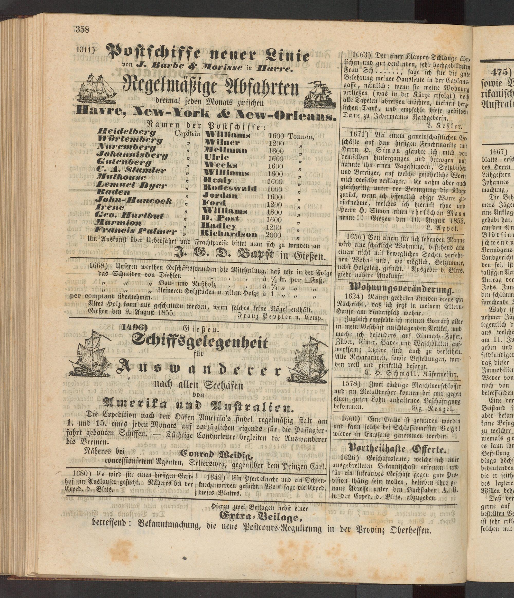 1310 HK oft schiffe neuer Linie von J. Barbe 4* Morisse in Havre.