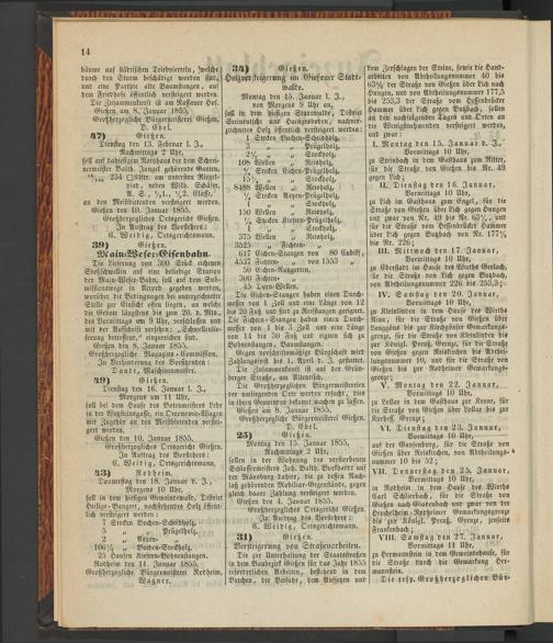 IV. Samstag den 20. Januar, Vormittags 10 Uhr, zu Kleinlinden in dem Hause des Wirths Rinn, für die Straße von Gießen über Langgöns bis zur Kirchgönser Gemarkungsgrenze, für die Straße von Kleinlindcn bis zur König!. Preuß. Grenze, für die Straße von Gießen gegen Reiskirchen bis Abtheilungsnummer 10, und für die Straße von Gießen bis zur Rovheimer Gemarkungsgrenze;