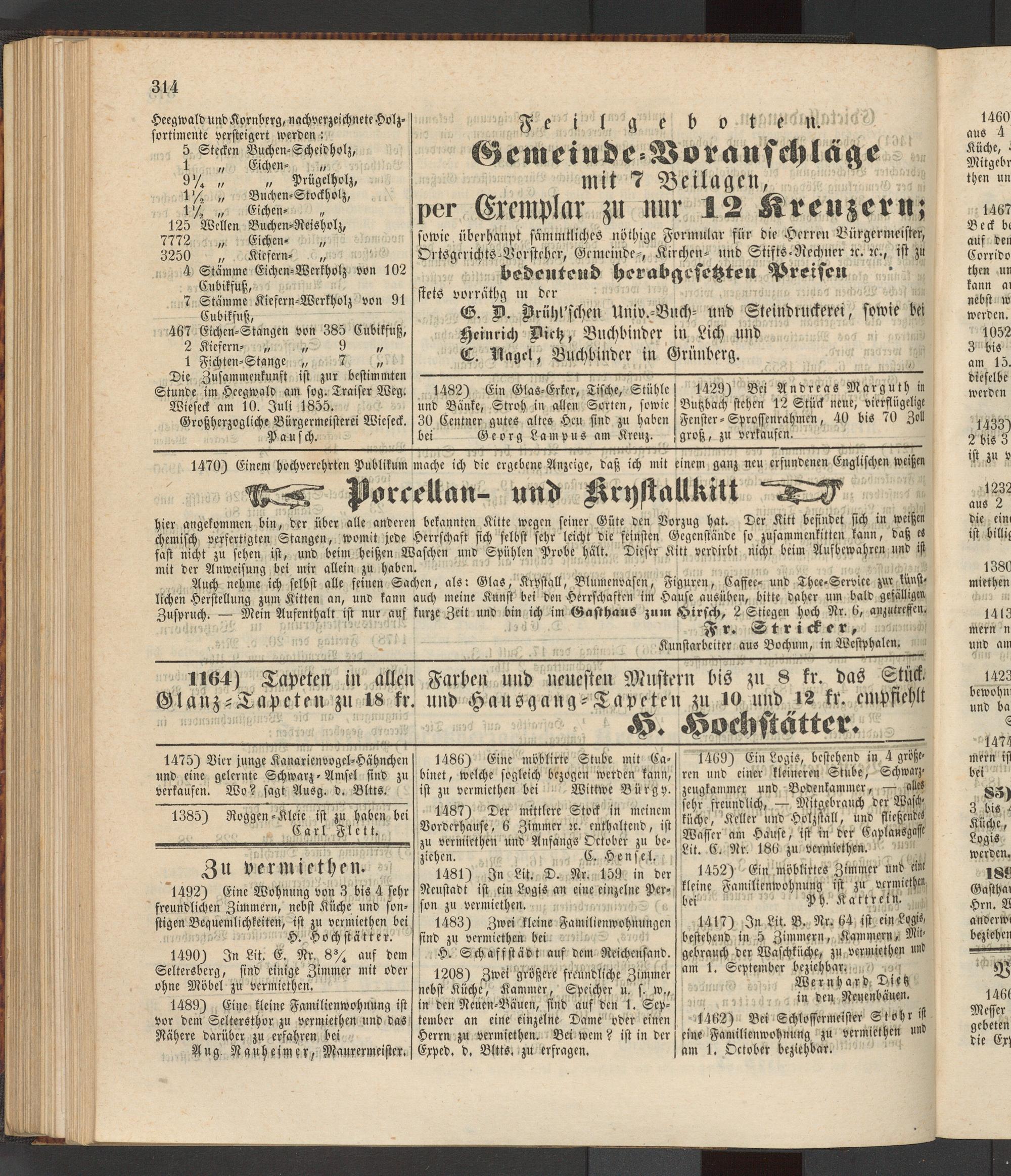 per Exemplar zu nur 12 Kreuzern; sowie überhaupt sämmtliches nöthige Formular für die Herren Bürgermeister, OrtSgerichts-Borsteher, Gemeinde-, Kirchen- nnd Stifts-Rechner re. re., ist zu bedeutend herabgesetzten Preisen