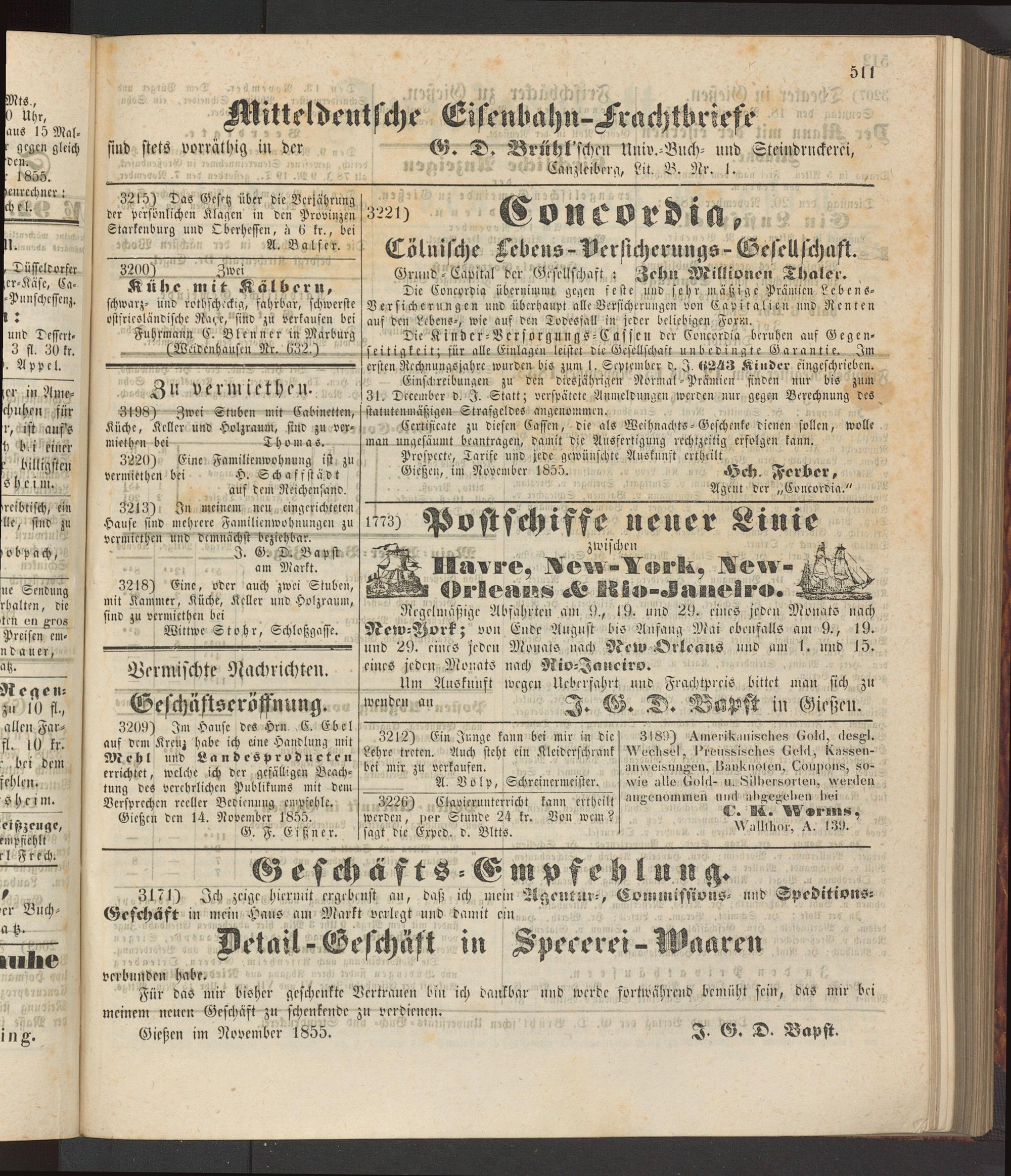 Gießen im November 1855. D. Bapst.