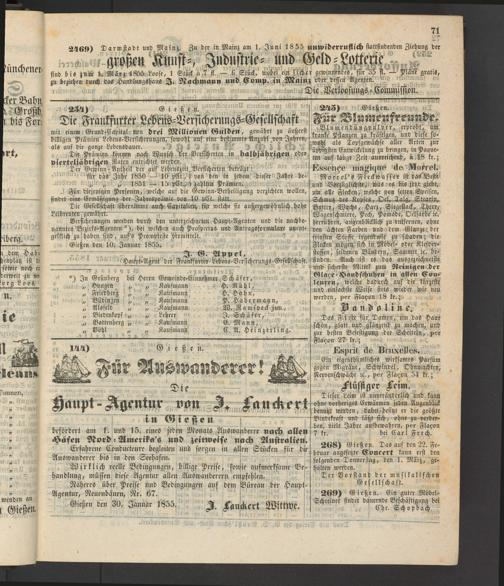 2469) Darmstadt und, Mainz. Zu der in Mainz am 1. Juni 1855 unwiderruflich stattfindenden Ziehung der