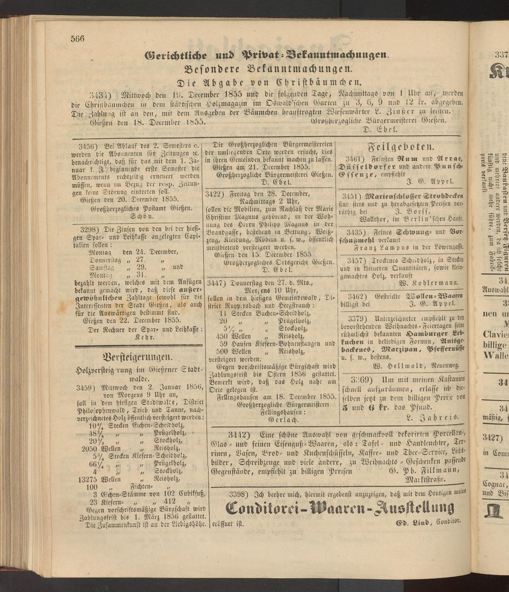 : Gienen den 18. December 1855." Grohherzogliche Bürgermeisterei Gießen.